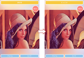 顔を撮影すると、「にっこり」or「にやにや」して写るAndroidアプリ。思ったより精度が良くにっこりする。